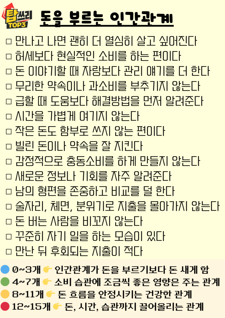결국 인간관계는 단순한 감정 문제가 아니라 삶의 방향, 그리고 돈의 방향까지 바꿉니다.