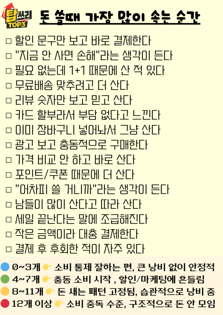 돈을 쓸 때 속는 순간들은 대부분 외부 요인이 아니라, 우리의 판단이 흔들릴 때 발생합니다. 할인, 무료, 리뷰, 감정 모두 소비를 유도하는 요소일 뿐입니다.